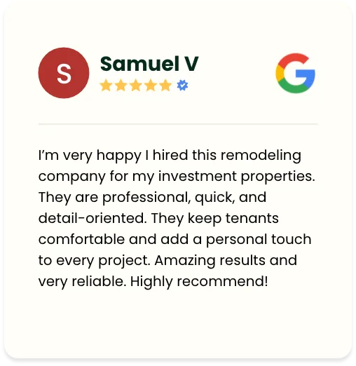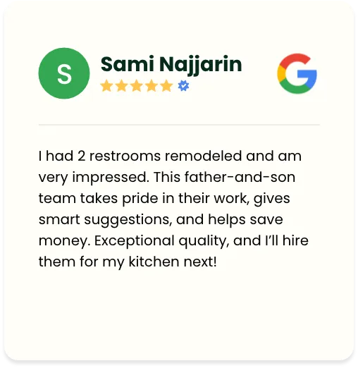 With 20 years of experience, we craft custom remodeling solutions for every unique need, ensuring quality work, timely delivery, and transparent communication. Our father-and-son duo brings a personal touch to every project, creating a familial culture from start to finish. Your satisfaction isn’t just a goal—it’s our priority.