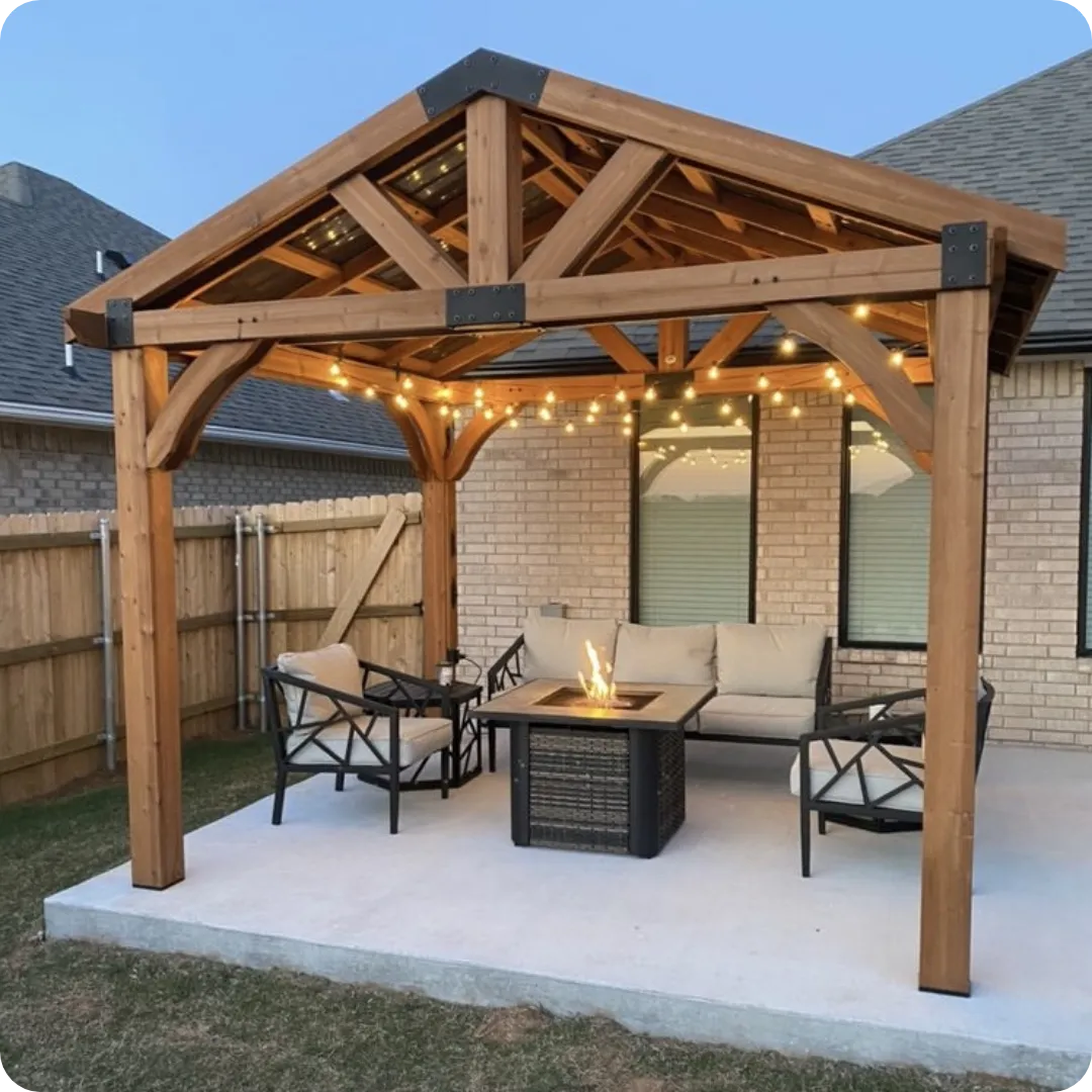 This project features a beautifully crafted custom wooden pergola designed to enhance the client’s outdoor living space. Built with premium quality timber and a strong structural framework, the pergola provides both shade and aesthetic appeal. The space was transformed into a comfortable backyard retreat, complete with seating arrangements and a fire pit area perfect for relaxing and entertaining guests. Our team focused on durability, precision craftsmanship, and a modern rustic finish to complement the home’s exterior design.